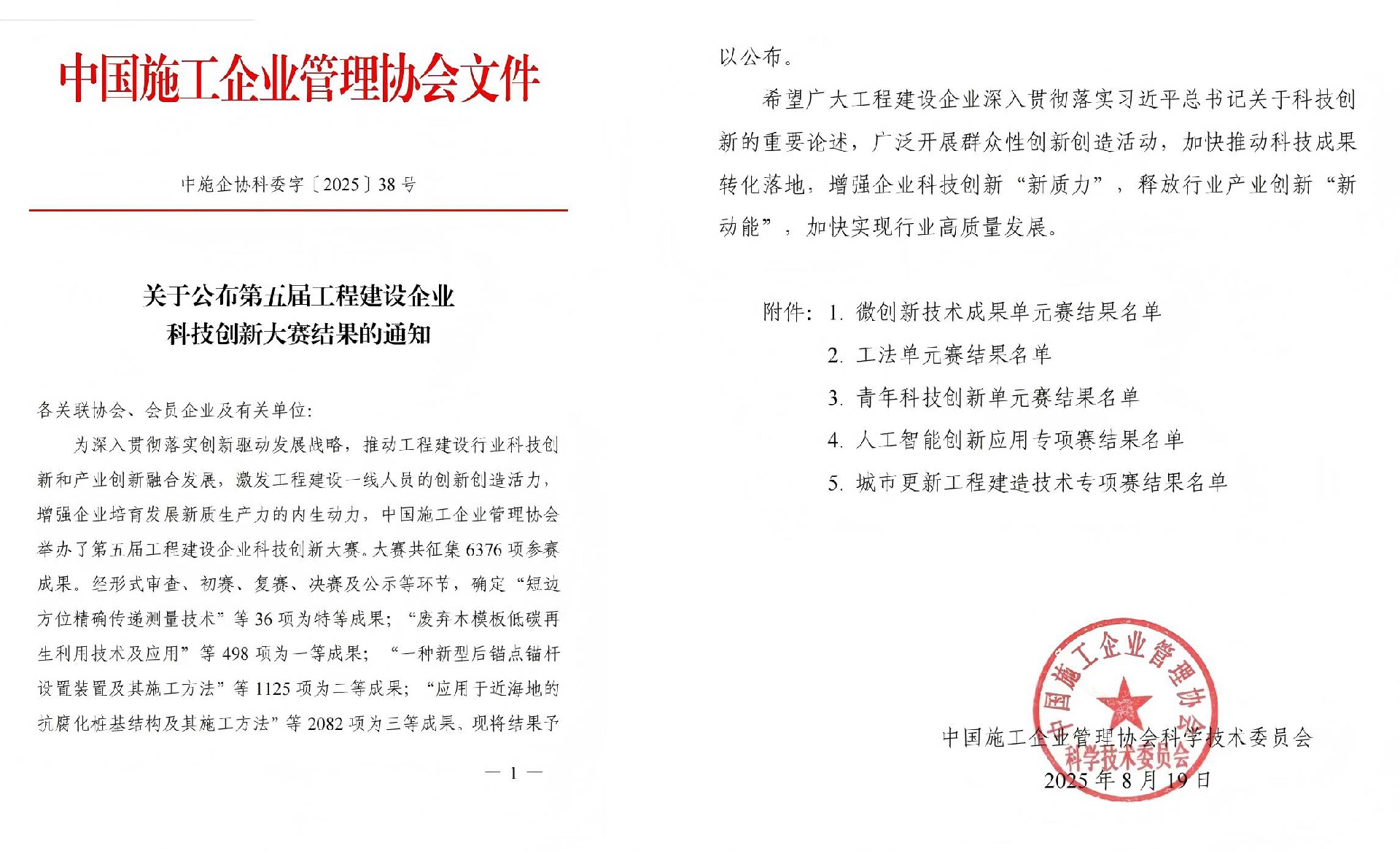 近日,第五屆全國工程建設(shè)企業(yè)科技創(chuàng)新大賽獲獎結(jié)果出爐,集團在“青年科技創(chuàng)新單元賽”中斬獲一···
